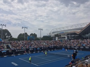 Did you know that the Australian Open is held in January in Melbourne? I for one have never paid a lot of attention to tennis or given it much thought but what a time to carpe diem. I attended with my friend T and his friend J and we got a ground pass for the full day. We arrived just after 10. The crowd was huge (worryingly so) but it ended up that the crowd size was a result of the gates not being open yet. All and all it was pretty smooth and easy to get in. Looking back, I would recommend going to the Hisense arena first and then getting a re-entry pass. We ended up going to the show courts first and trying to get into Hisense later in the afternoon. At that point, the woman at the Hisense entry basically told us it would be a 2-4 hour wait and it would be better to watch the matches on tv if we really wanted to see a particular match. That said, as a non-tennis person, I was totally happy watching the show court games. I saw 4 matches (women’s’ doubles, men’s’ doubles, men’s singles, a legends match) and the start of a second women’s doubles. My favourite was probably the legends match because they were hilarious and were obviously not taking the game seriously at all. I also really enjoy the style of doubles matches. By the end of the day I felt like a pro with all my tennis knowledge. “Love.” “Let.” “40-all.” “Deuce.”